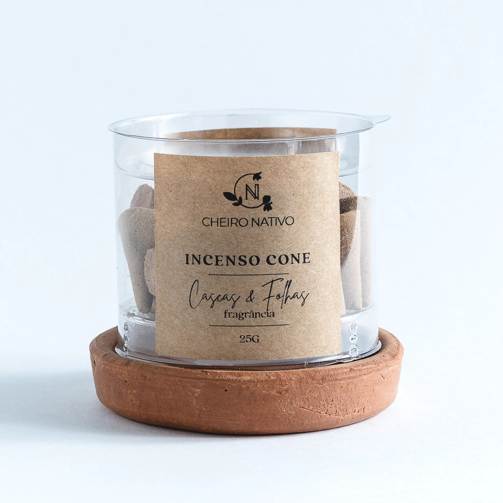 Este produto contém: 1 embalagem com 25g de incenso cone (entre 20 e 25 unidades) e 1 prato de cerâmica.
