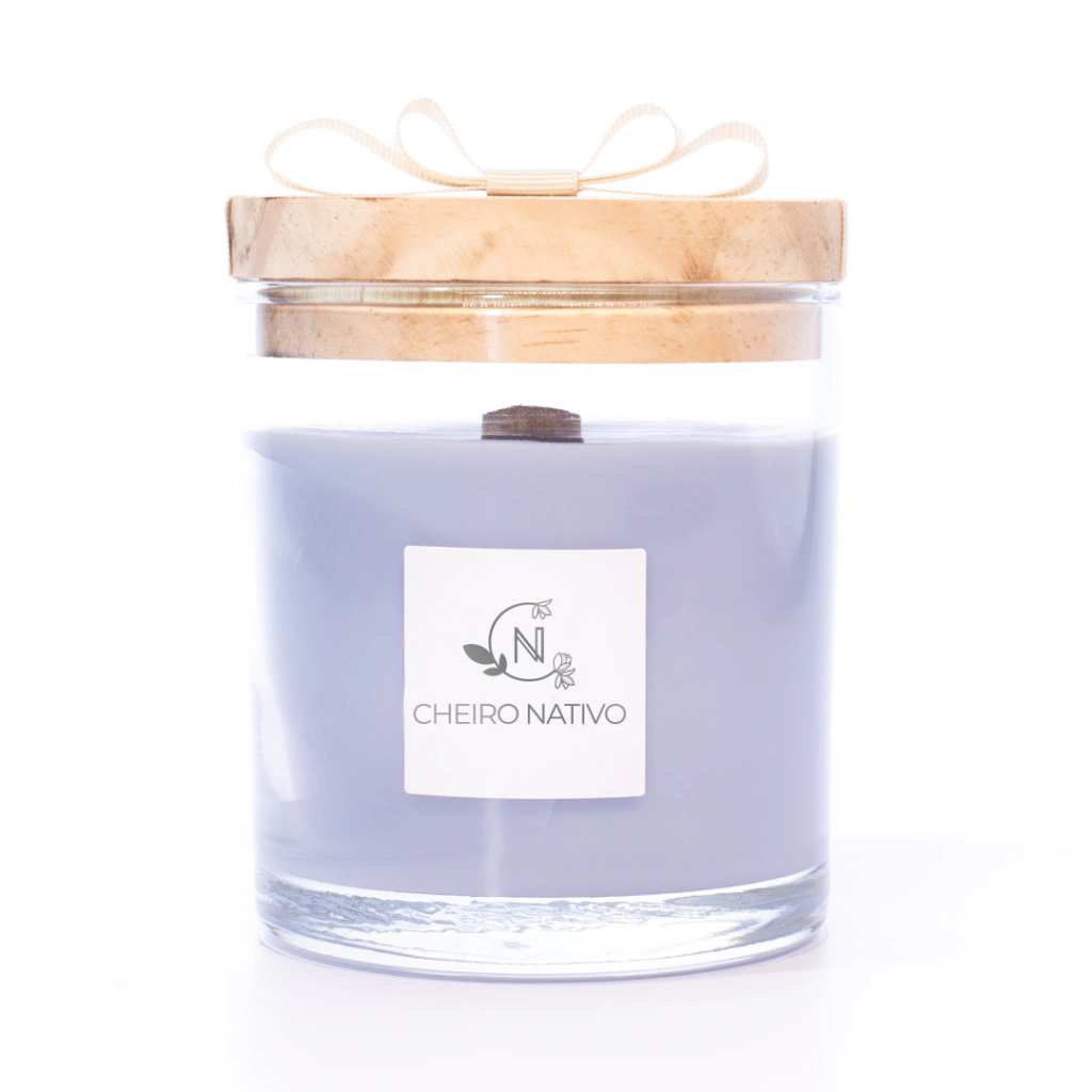 Vela perfumada com base vegetal e longa duração. Não libera fumaça escura e não contém ingredientes de origem animal.